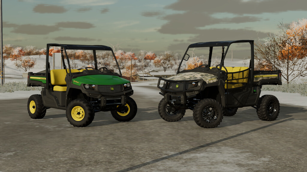 John Deere XUV685E Gator, usado para acelerar a locomoção dentro de sua fazenda, auxilia na amostragem do solo, também pode transportar grãos e cargas. Ele também vem com um carrinho pequeno que pode ser usado para vários transportes.